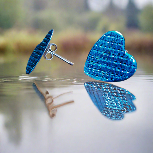 Ασημένια σκουλαρίκια με τυρκουαζ καρδιές