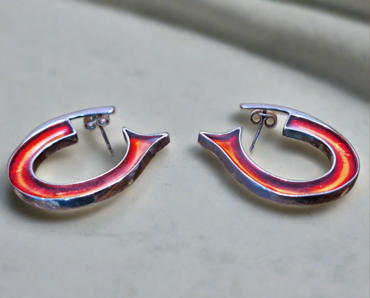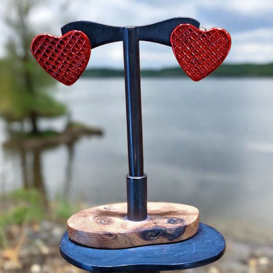 Χειροποίητα σκουλαρίκια καρδιές με κόκκινο σμάλτο