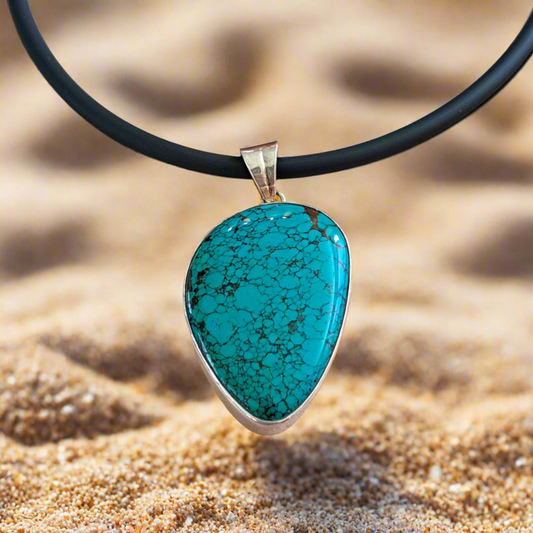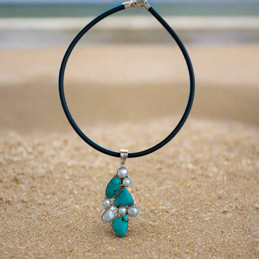 Χειροποίητο κολιέ από ασήμι με μεγάλα τυρκουάζ
